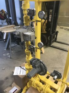 Custom fabricated natural gas, propane and landfill gas supply trains to meet NFPA, FM Global, AON, GE GAP (IRI) and CSA requirements. Welded and threaded construction available from ¾” to 3”. All gas trains are custom designed to meet the customer’s heat input and application requirements. Gas trains feature manual shutoff, automatic shutoff, pressure switches, control valves, pressure regulators and pilot lines. Component selection is based on the specific application and code requirements.